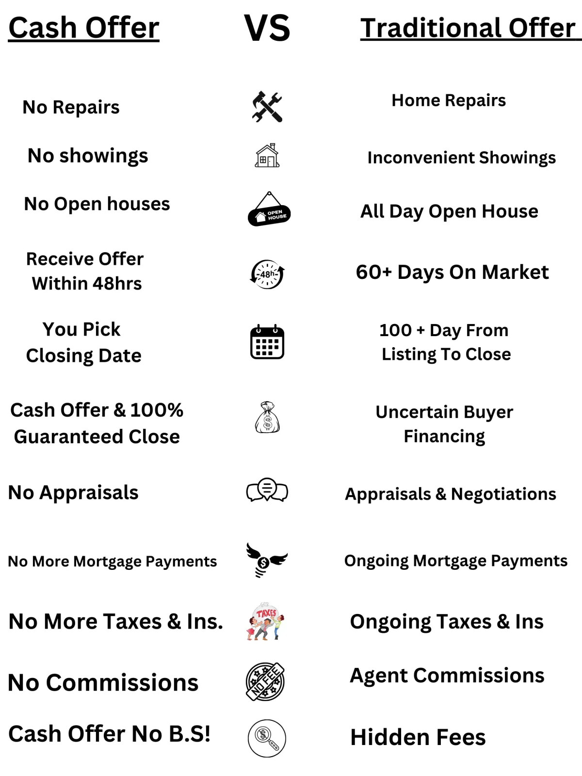 In contrast, our company operates as a real estate investment and private cash buyer. We buy your home directly, eliminating the need for listings and waiting for buyers. This direct cash purchase allows us to make decisions quickly and complete transactions in just a few days. After acquiring a property, we renovate or repair it before placing it back on the market. This approach offers a quick and straightforward solution for you to move on from your property while enabling us to profit from later resale. It's a mutually beneficial arrangement that simplifies the selling process for you.